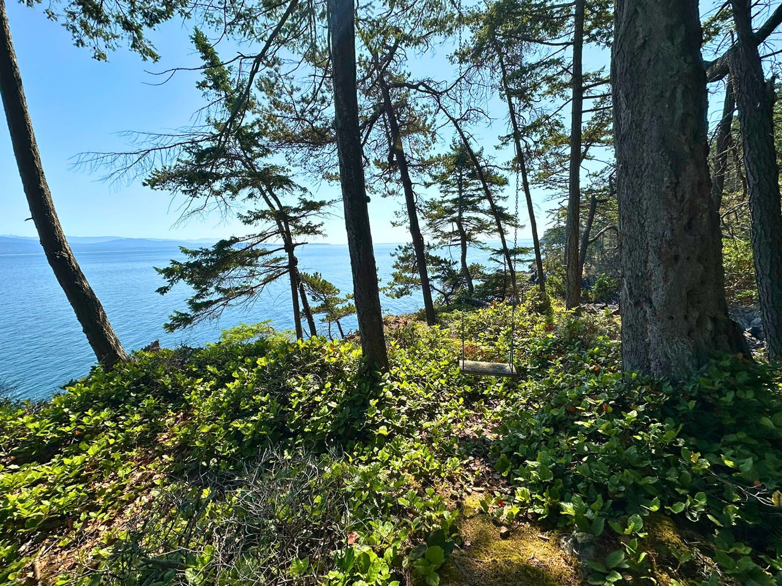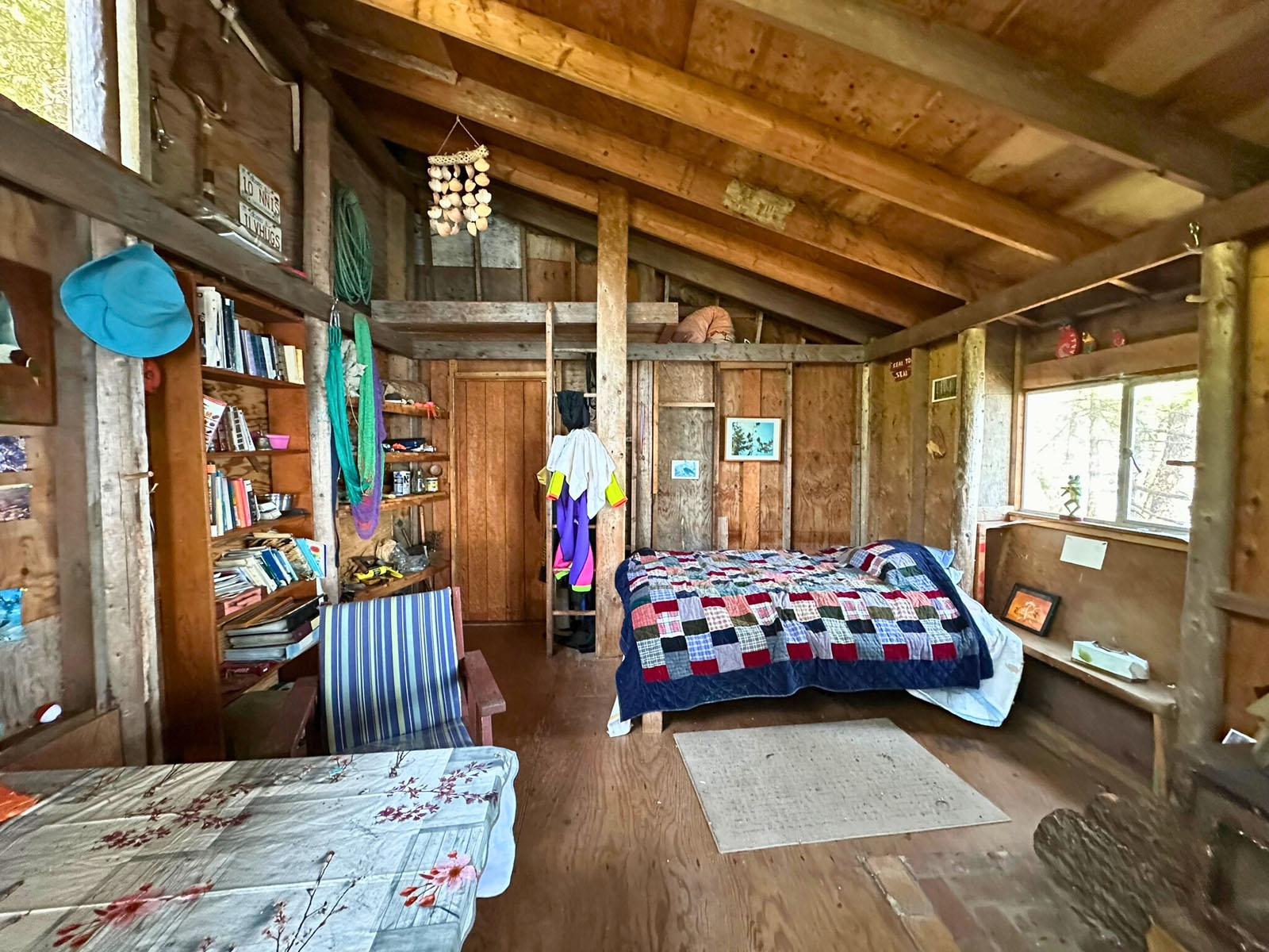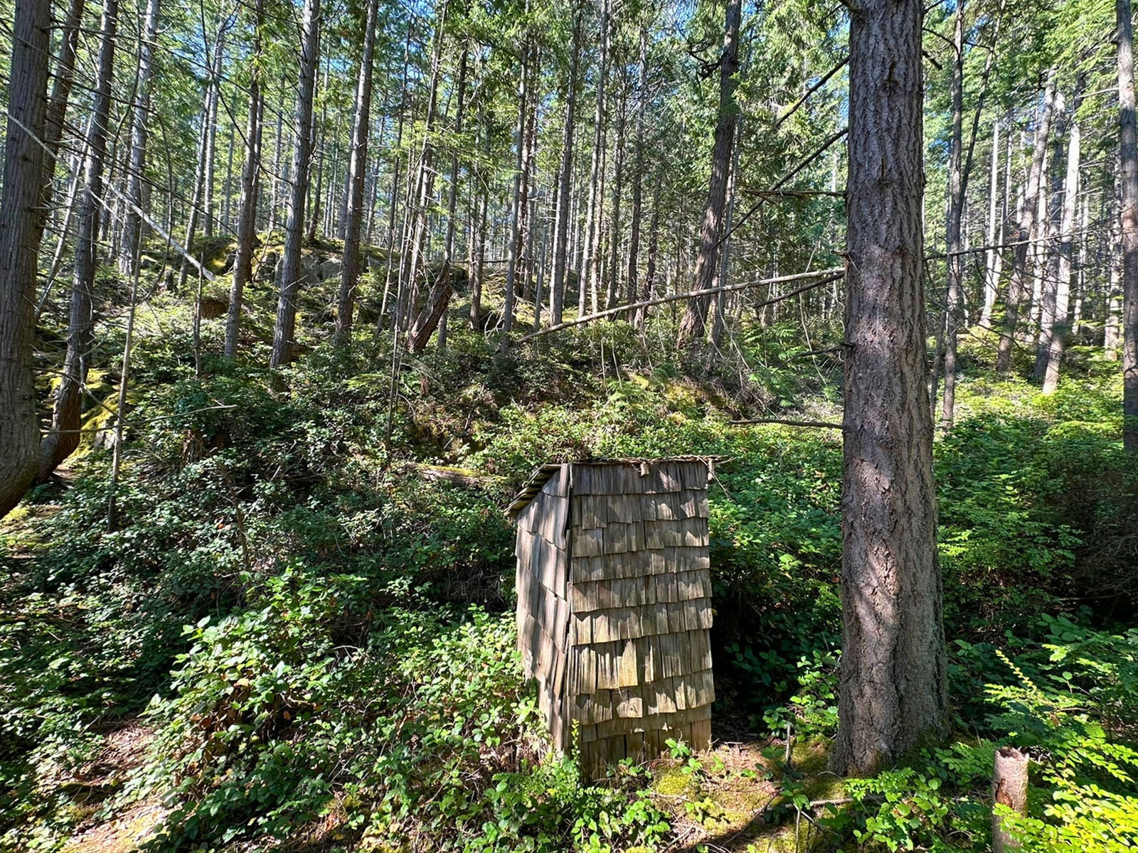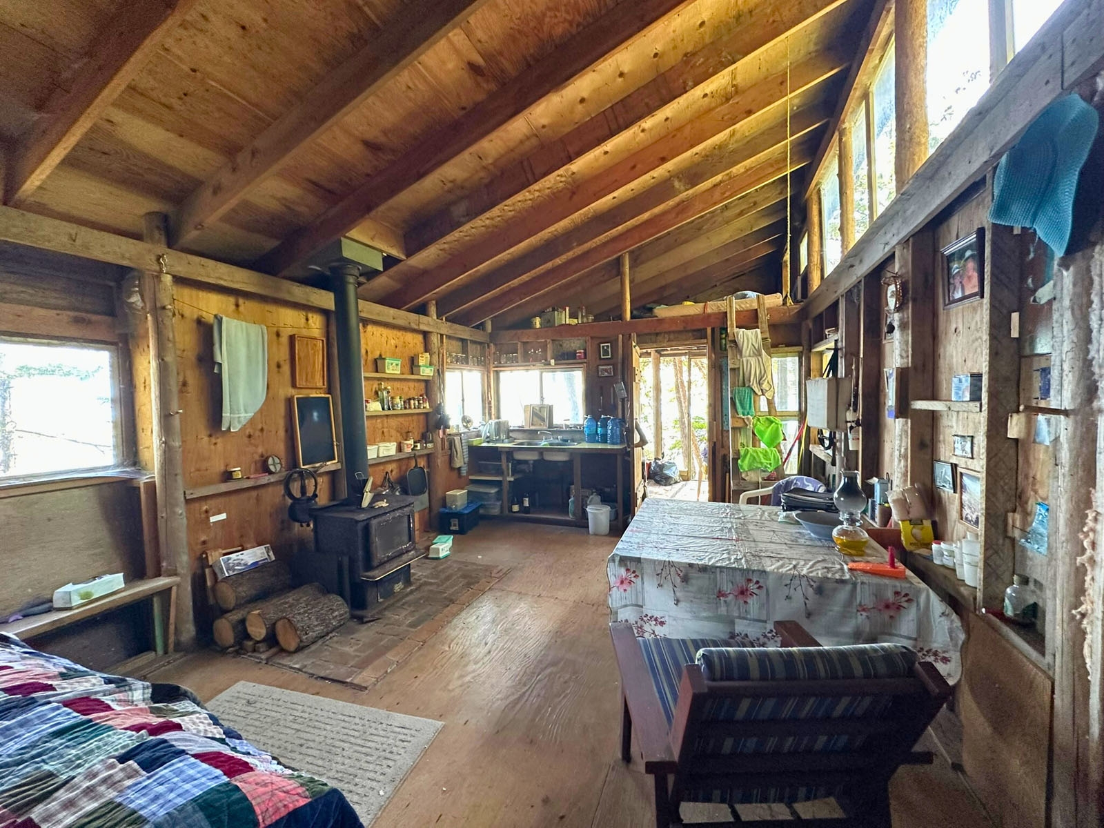 The property features two coves, including one beside the cabin with a rocky beach well-suited for launching kayaks or small boats. A network of walking trails weaves through the forested landscape, while the access road to Anderson Bay passes through the middle of the acreage. Trail access also connects directly from Anderson Bay into the property, making it an excellent base for hiking, kayaking, or mountain biking on South Texada’s extensive network of old roads.