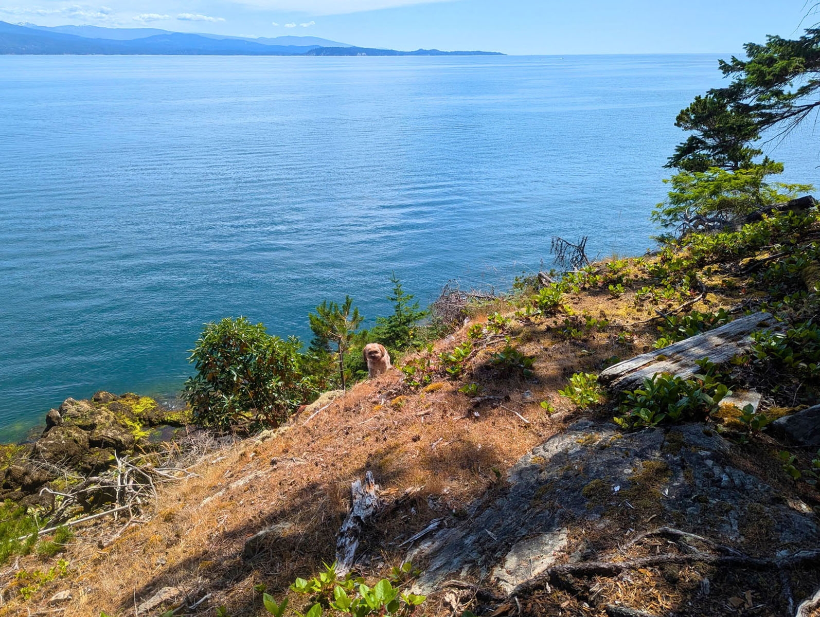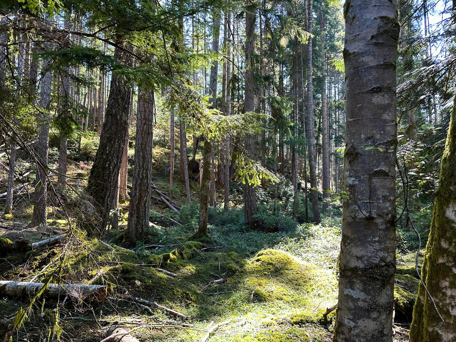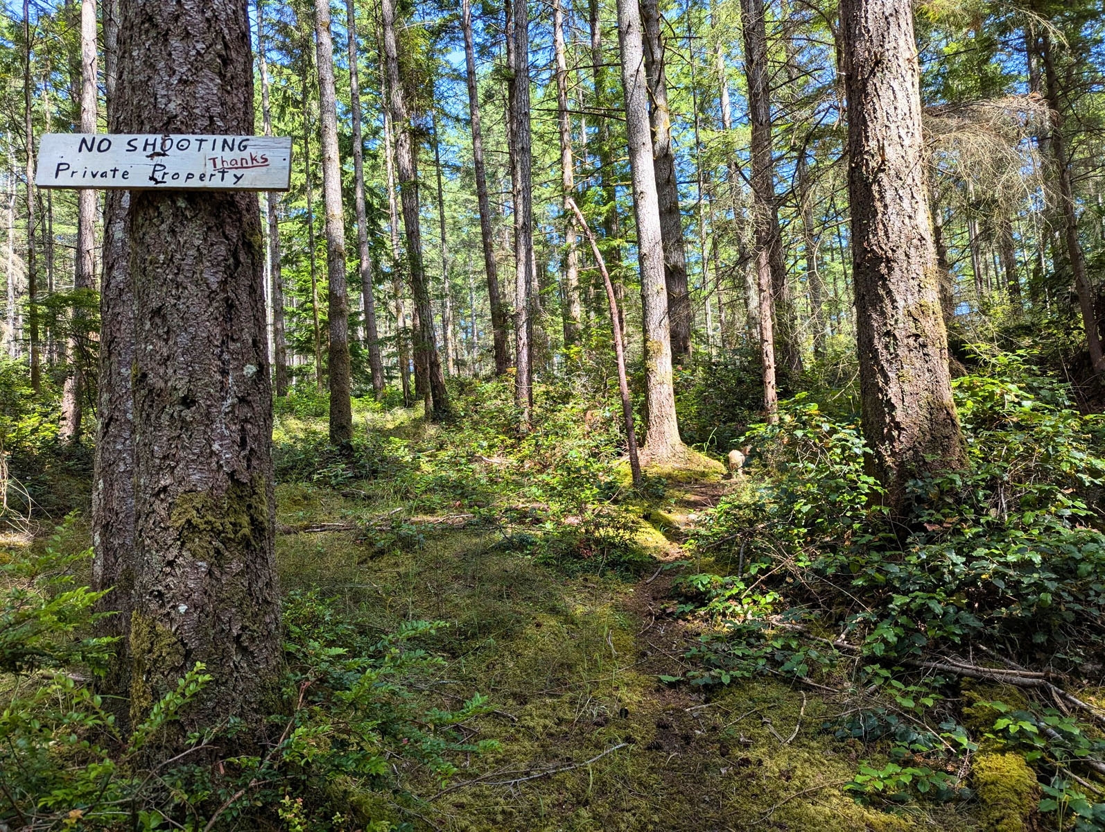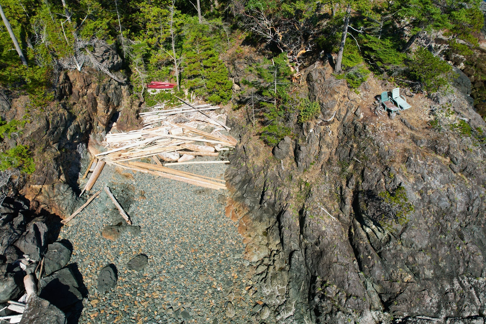 The property features two coves, including one beside the cabin with a rocky beach well-suited for launching kayaks or small boats. A network of walking trails weaves through the forested landscape, while the access road to Anderson Bay passes through the middle of the acreage. Trail access also connects directly from Anderson Bay into the property, making it an excellent base for hiking, kayaking, or mountain biking on South Texada’s extensive network of old roads.
