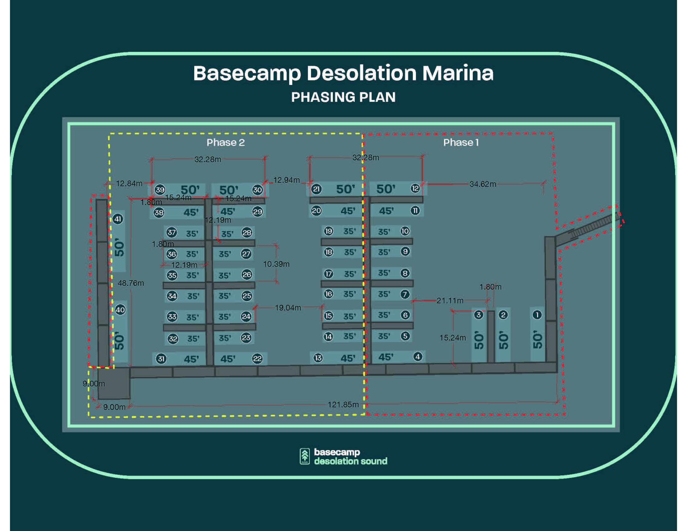 Landowners at Basecamp have the exclusive opportunity to purchase 20-year prepaid moorage slips at Basecamp, located right around the corner from Desolation Sound. The Basecamp Marina is now under construction and due to have the first phase completed in the coming weeks and offers a variety of slip lengths from 35' to 100', with power, fresh water and Wi-Fi enabled security. Note: moorage is available exclusively to residents of Basecamp.