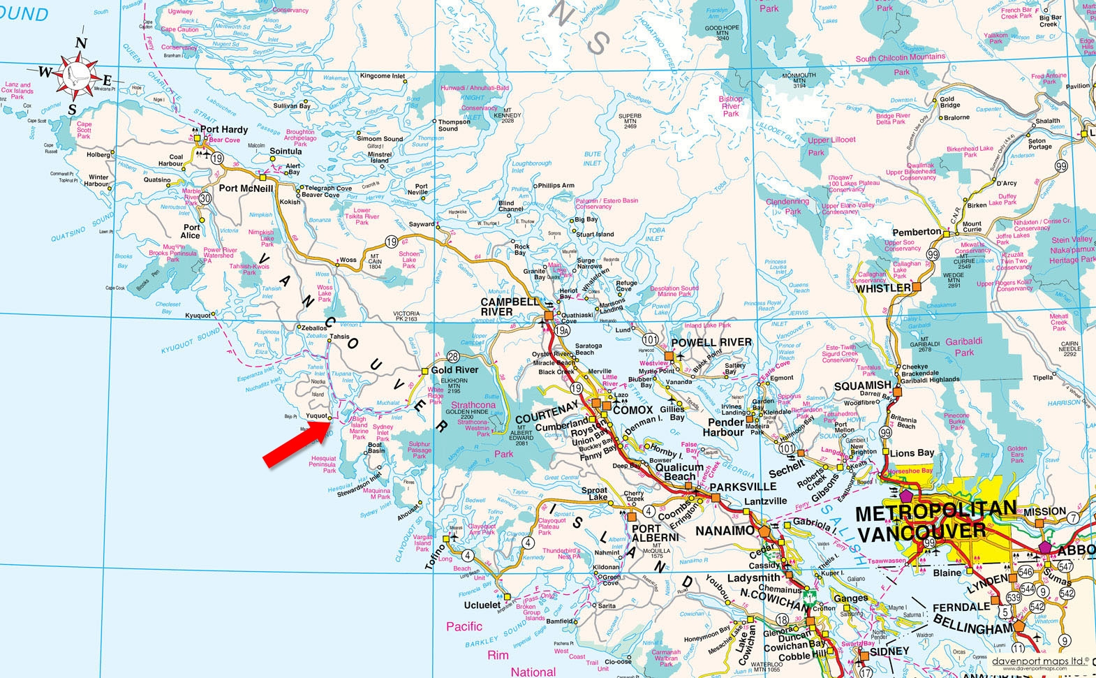 The birthplace of British Columbia is the small community of Yuquot on Nootka Island, also known as Friendly Cove. Yuquot is the site of the first contact between Europeans and First Nations people in British Columbia.
