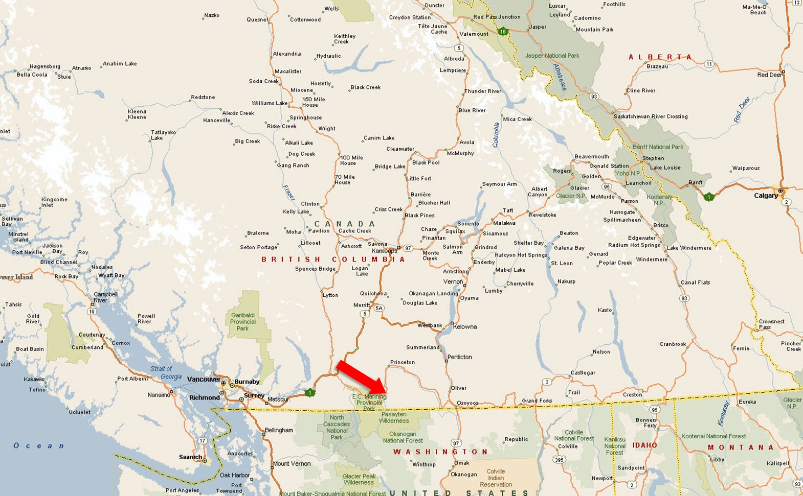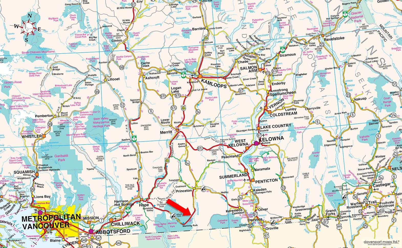 • From Hope take Highway 3 towards Princeton