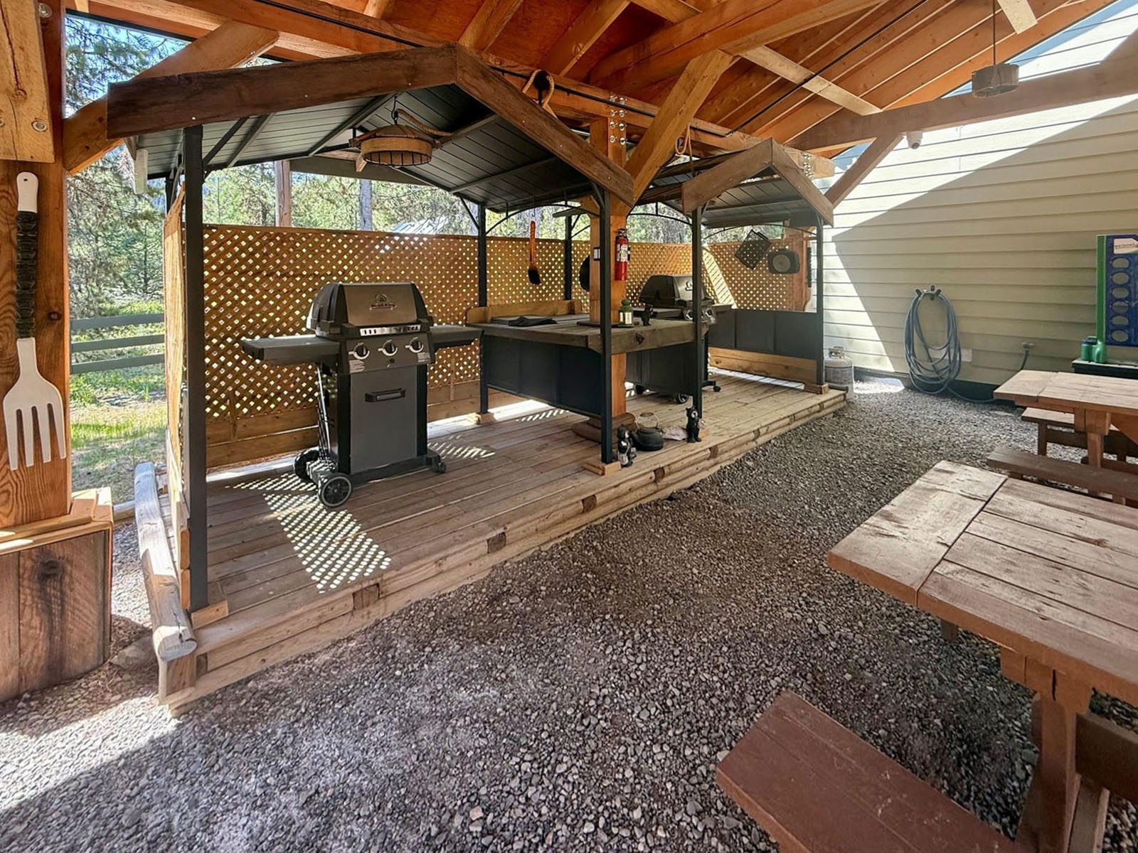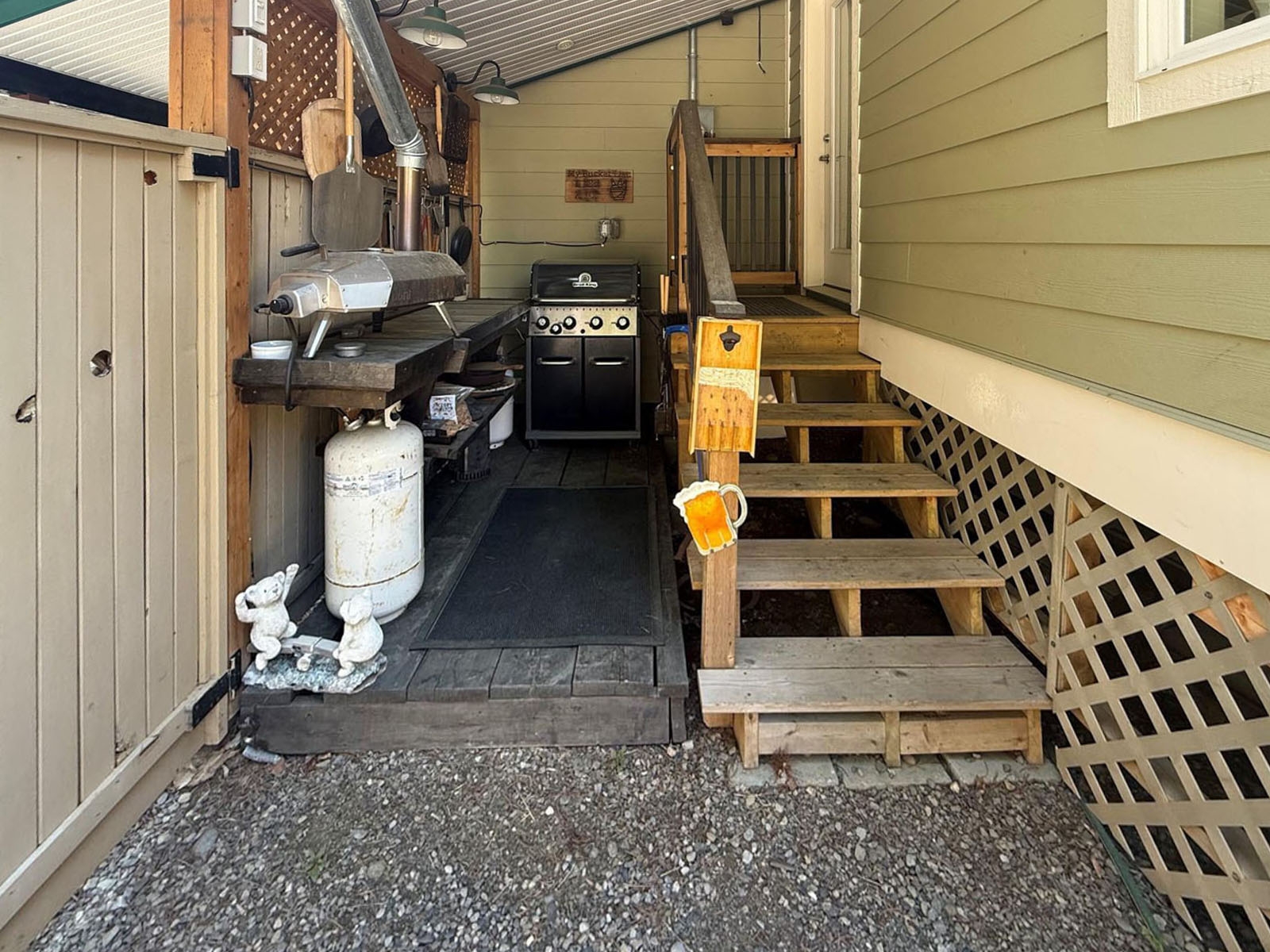 The owner’s residence offers a 1-bedroom, 1-bathroom layout with full kitchen, laundry, and a spacious living area, plus a private outdoor space with firepit and BBQ. Two sea cans provide secure storage. The property is fully Wi-Fi-enabled with remote control of security system with cameras, electronic locks, lighting, hot water, and power systems. Backup power is supplied by a propane Generac generator. Water is via an on-site shallow well, piped below grade to the crawlspace, with septic tank and field in place.